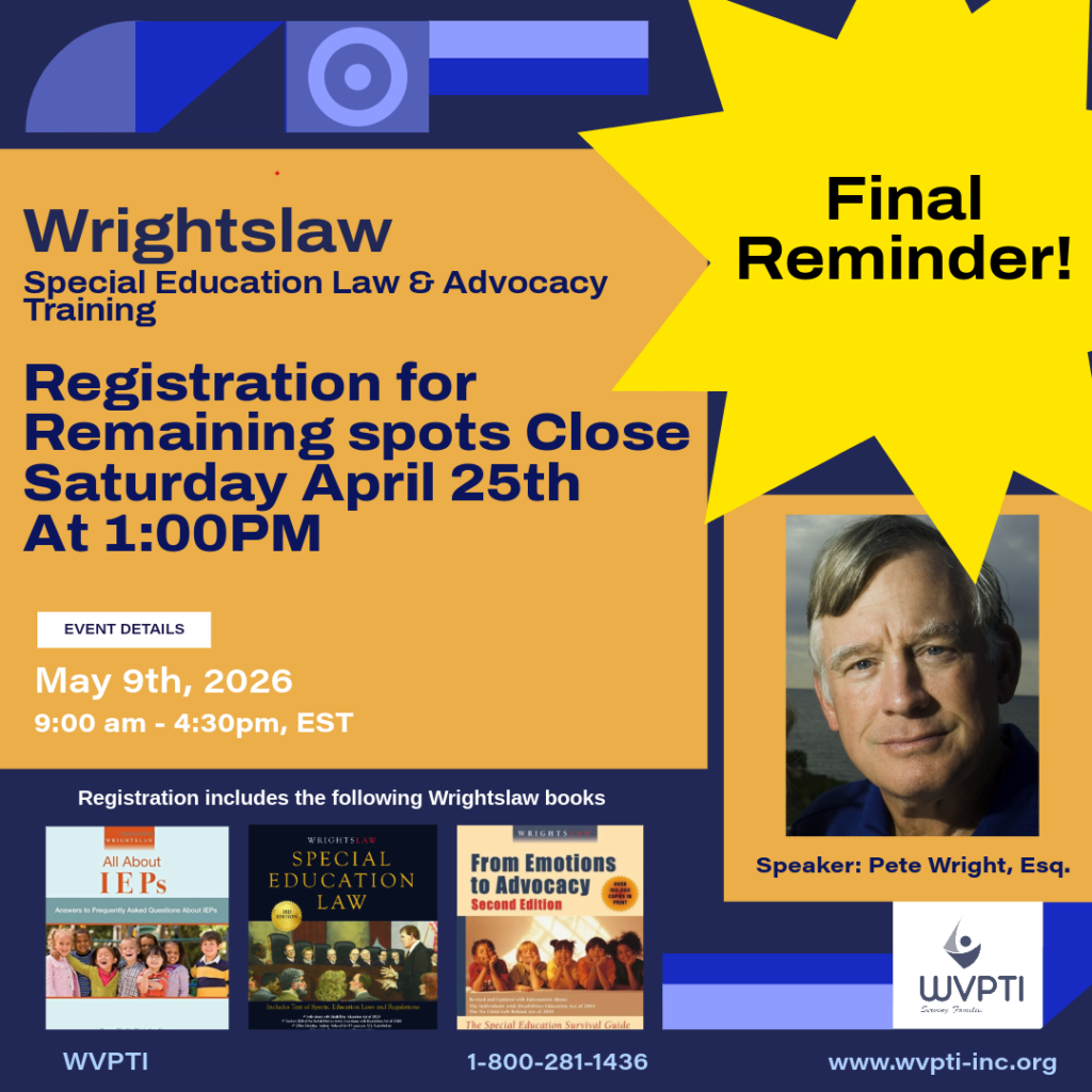 Always be learning! Join us for a day of exceptional training with Pete Wright, Esq., a nationally recognized leader in special education and advocacy.